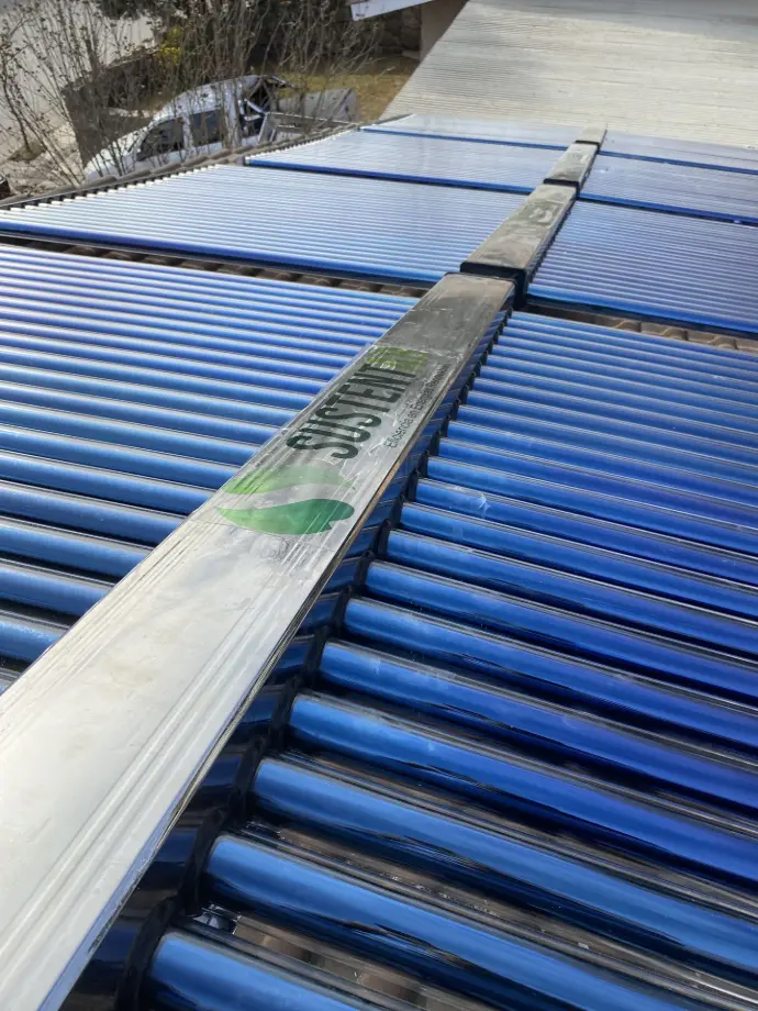 El colector termosifonico de 50 tubos ha sido instalado en una vivienda unifamiliar para climatizar el agua de la piscina.